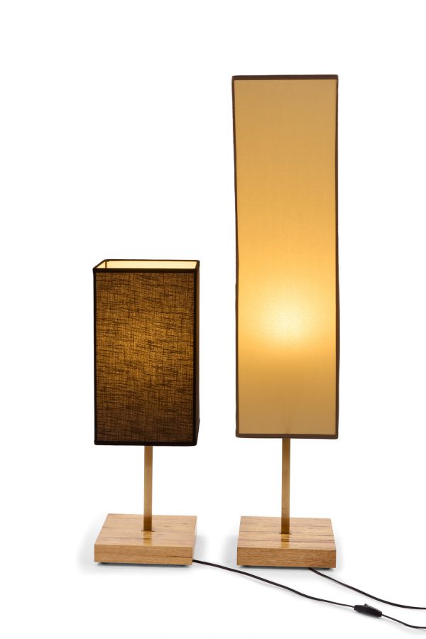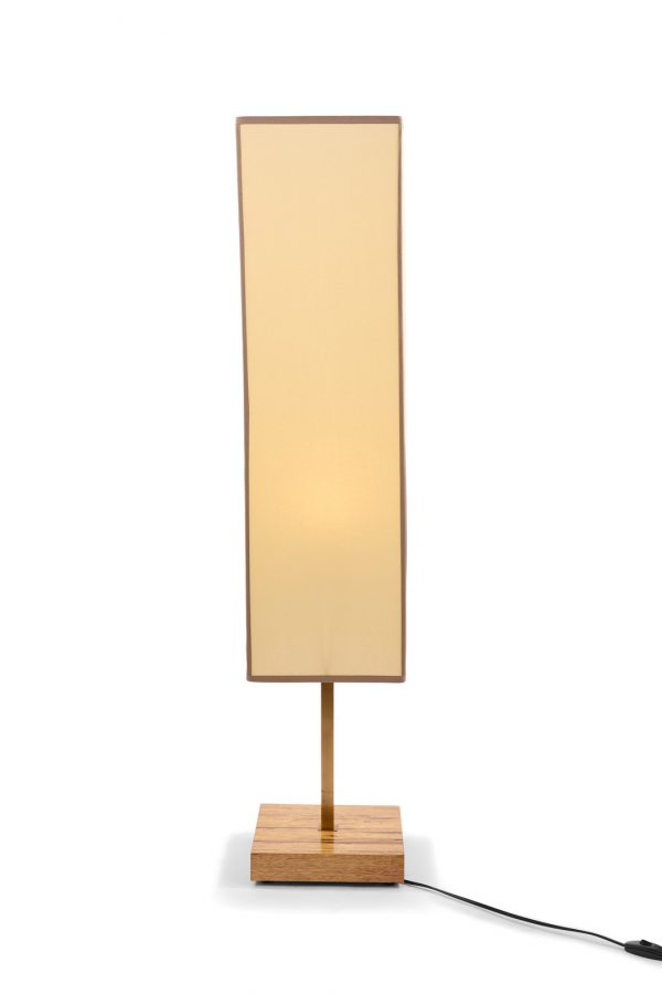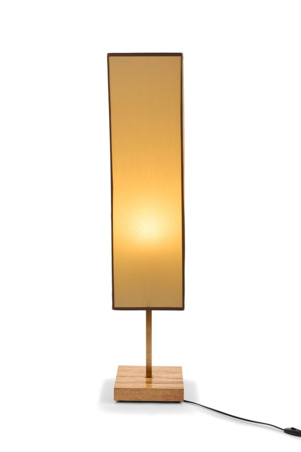 בסיס מרובע מעץ אגוז פראי + זרוע פליז + אהיל מרובע חומר קלף 5 במידה 23*23, גובה 80