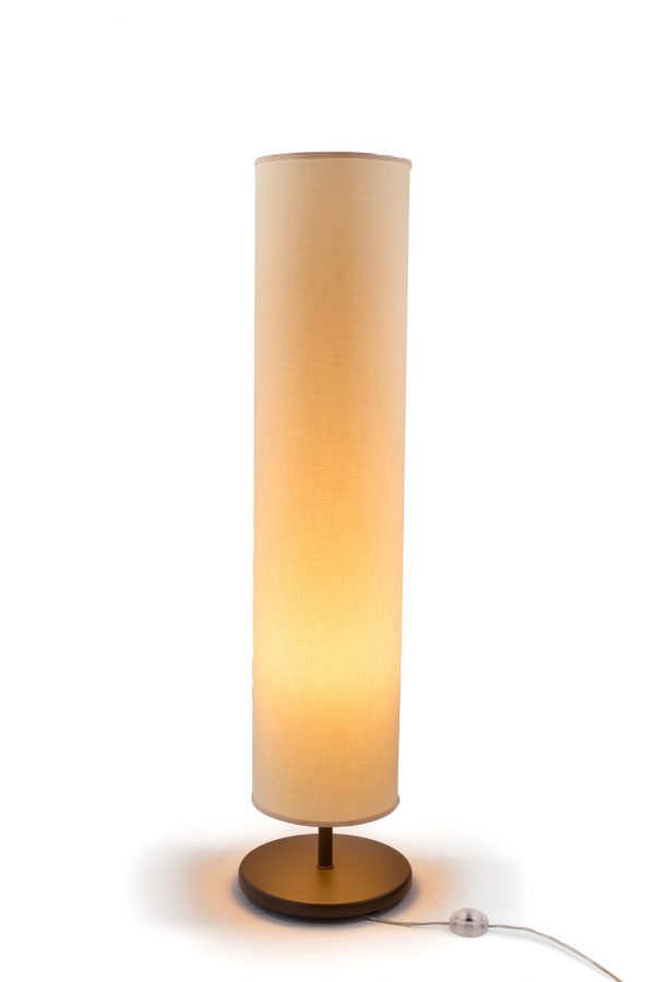 מנורת רצפה: בסיס ברזל מתכת בשלל צבעי RAL בתנור + משקולת ליציבות + אהיל צילינדר בשלל גוונים קוטר 25 גובה 55