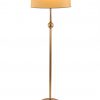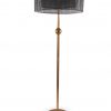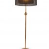 מנורת רצפה עשויה פליז עם דוגמא + אהיל צילינדר רשת קוטר 50 + אהיל פנימי קוטר 20 / אהיל במידה 40*45, גובה 28, חומר קלף 5 + תפירה