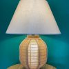 / עששית קש גובה 34 ס"מ עם אהיל ונורה פנימית + אהיל קונוס בד יוטה מידה 25*50(31 גובה)